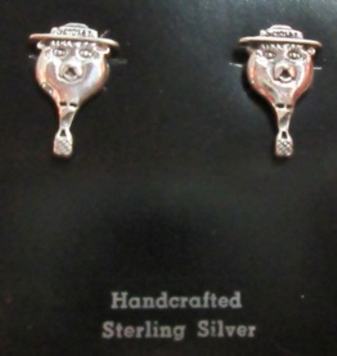 Sterling silver Smokey Bear Balloon earrings with posts. It is a small earring at 1/2" wide and 3/4" tall.